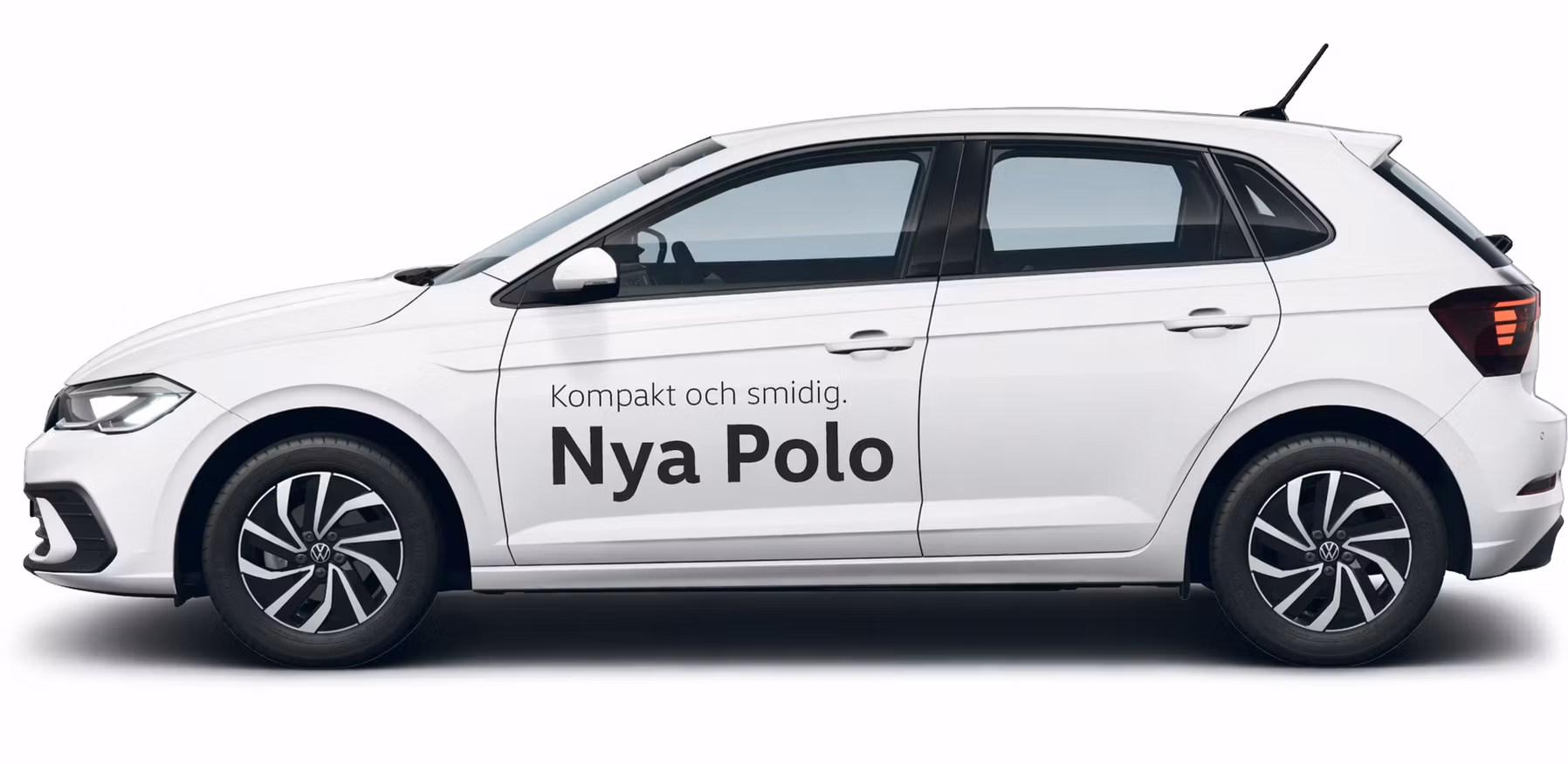 Kompakt och smidig.Nya PoloOfficiell dekor till Volkswagen PoloDekoren är utskuren i självhäftande vinylfolie och levereras med appliceringstejp. Dekorsats